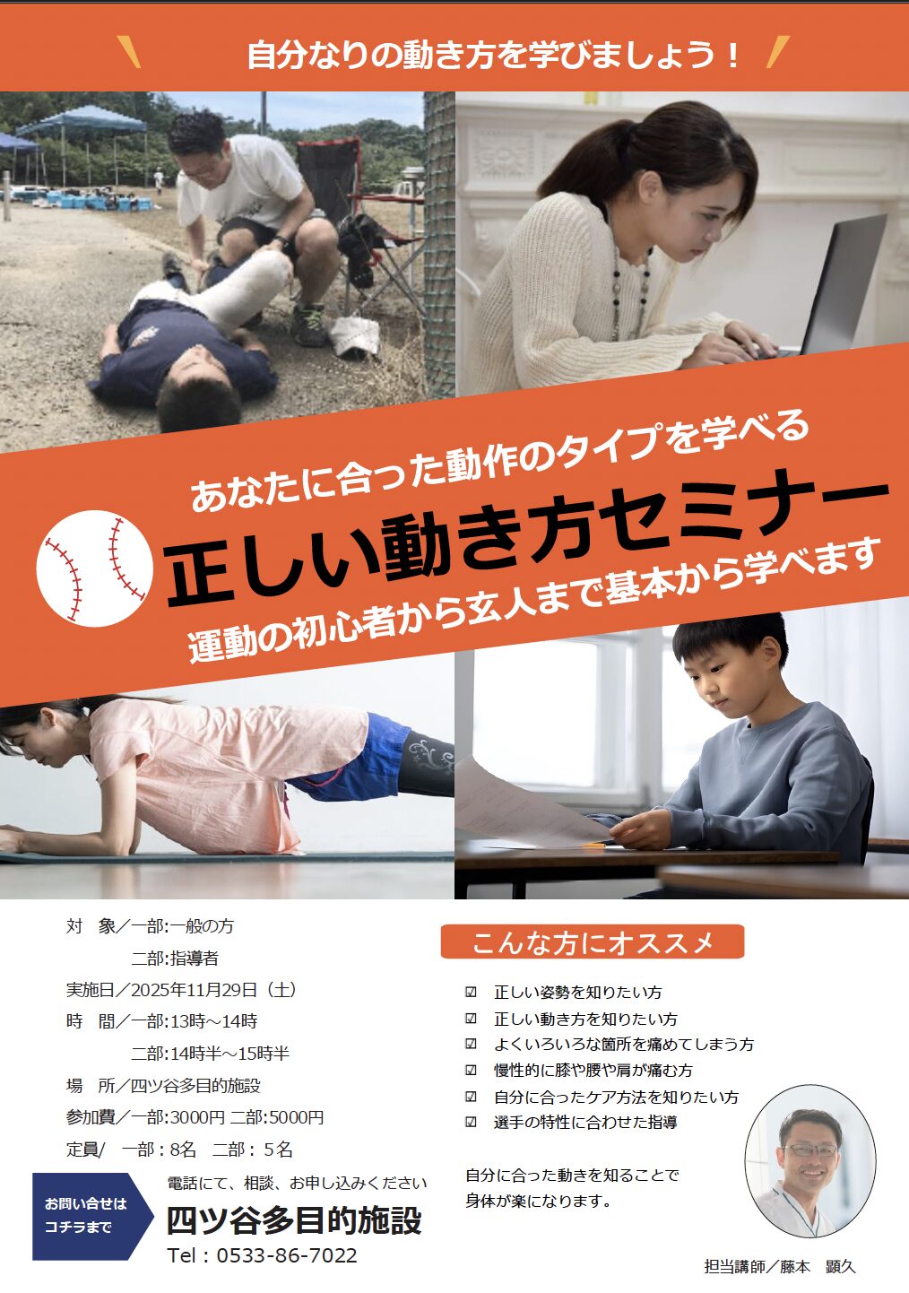 大好評につきセミナー続編!代表藤本の正しい姿勢・正しい動き方セミナー