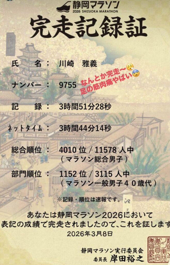 ハーフマラソンは昨年の豊根マラソンで自己新記録、