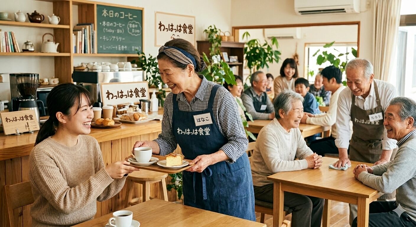 認知症の方が店員となり、注文を取り、商品を運びます。